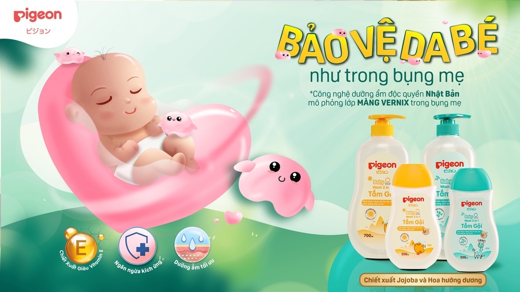 Với nhiều năm kinh nghiệm trong ngành chăm sóc da, thấu hiểu nỗi trăn trở của các bà mẹ. Pigeon đã không ngừng nghiên cứu, cải tiến thành công dòng sản phẩm vừa được sử dụng như sữa tắm, vừa được sử dụng như dầu gội cho bé một cách toàn diện với công thức dịu nhẹ từ Nhật Bản.