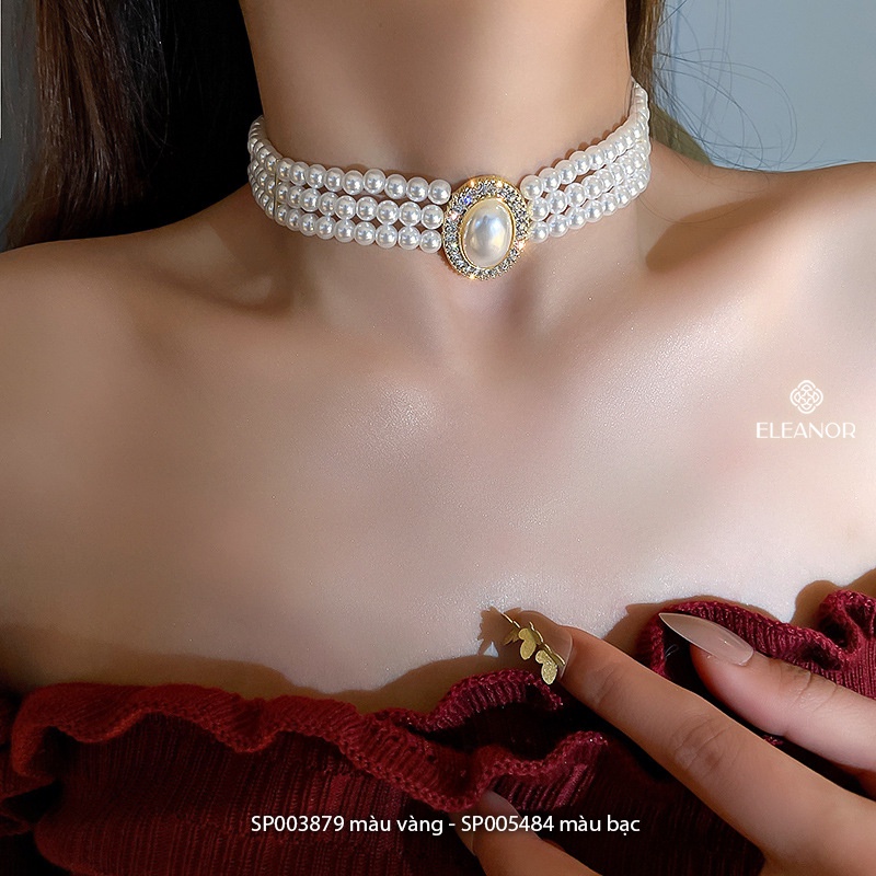Dây chuyền nữ ngọc trai nhân tạo Eleanor Accessories choker mặt đính đá phụ kiện trang sức 3879
