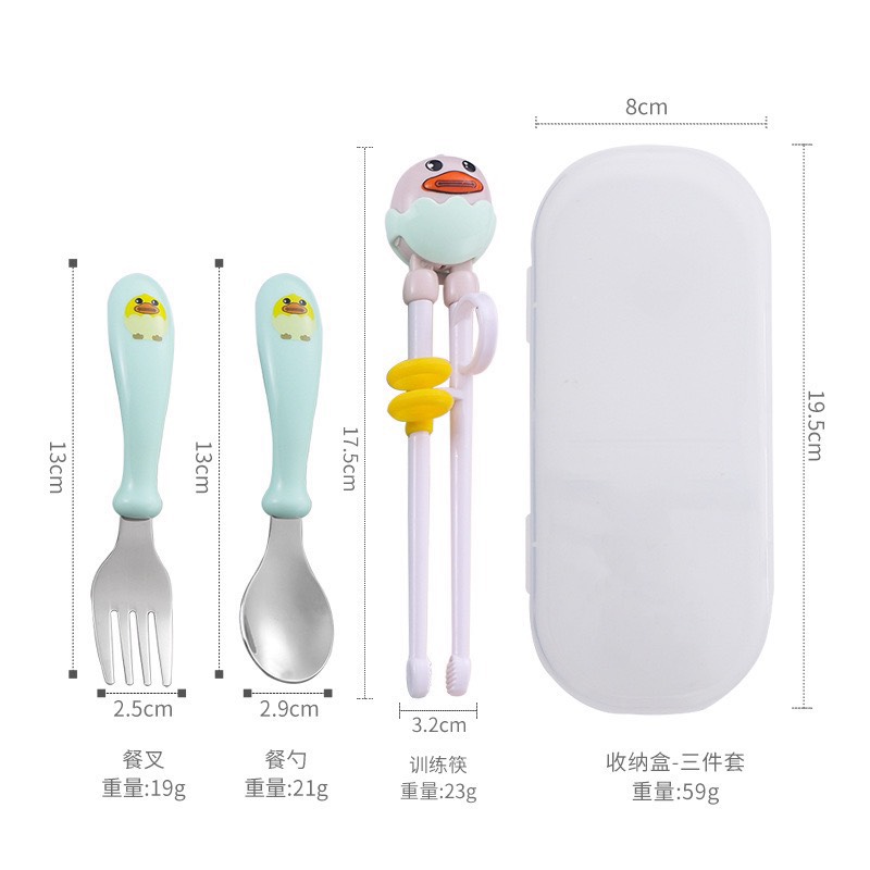 Bộ đũa tập ăn cho bé kèm thìa nĩa cao cấp hình gà đáng yêu có hộp đựng tiện lợi đi du lịch đi chơi