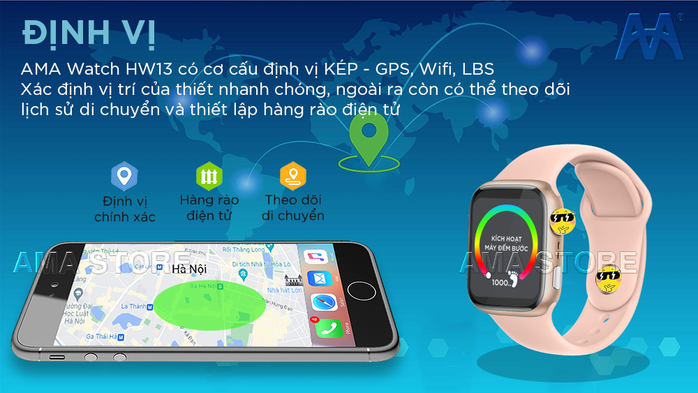 Đồng hồ Thông minh Gắn sim Gọi Video call cho Trẻ em Tiểu học THCS, THPT Model AMA Watch HW13 phiên bản GPS, Wifi.- Đồng hồ Thông minh HW13 GPS, Wifi, định vị Kép có kiểu dáng thiết kế tương tự Ap.p Watch. Đây là Model mới nhất 2023, hàng Chính hãng thương hiệu AMA.- Chức năng: Gắn sim, Gọi video call, Định vị tìm kiếm vị trí, SOS khẩn cấp, hàng rào bảo vệ an toàn, nhắn thoại, đếm bước chân...và nhiều chức năng khác Quý khách hãy khám phá thêm khi sử dụng.- Chống nước: Sản phẩm chống nước tiêu chuẩn IP67 (Rửa tay, đi mưa tốt) không tắm hoặc bơi lội để đảm bảo an toàn và kéo dài tuổi thọ cho sản phẩm- Pin: Mức sử dụng Pin trung bình 48h, có thể nhiều hoặc ít hơn tùy mức sử dụng.- Nếu Quý khách có câu hỏi nào, vui lòng CHÁT hoặc gọi nhanh cho chúng tôi 0986.8485.99 để nhân viên CSKH hỗ trợ!- Về các vấn đề cài đặt Quý khách yên tâm, AMA Store chúng tôi có đội ngũ nhân viên hỗ trợ cài đặt từ xa qua Zalo chuyên nghiệp!