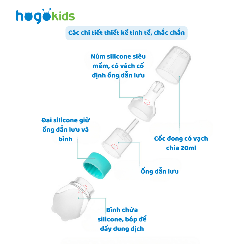 Dụng Cụ Bón Thuốc, Uống Sữa Silicone Hogokids Chống Sặc Đầu Slicone Siêu Mềm Kèm Cốc Đong 20ml