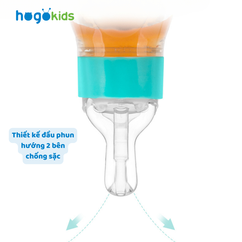 - Đầu dụng cụ bằng sillicon siêu mềm, mô phỏng như ty mẹ, bé dễ dàng hợp tác, thiết kế chia làm 2 tia chống sặc