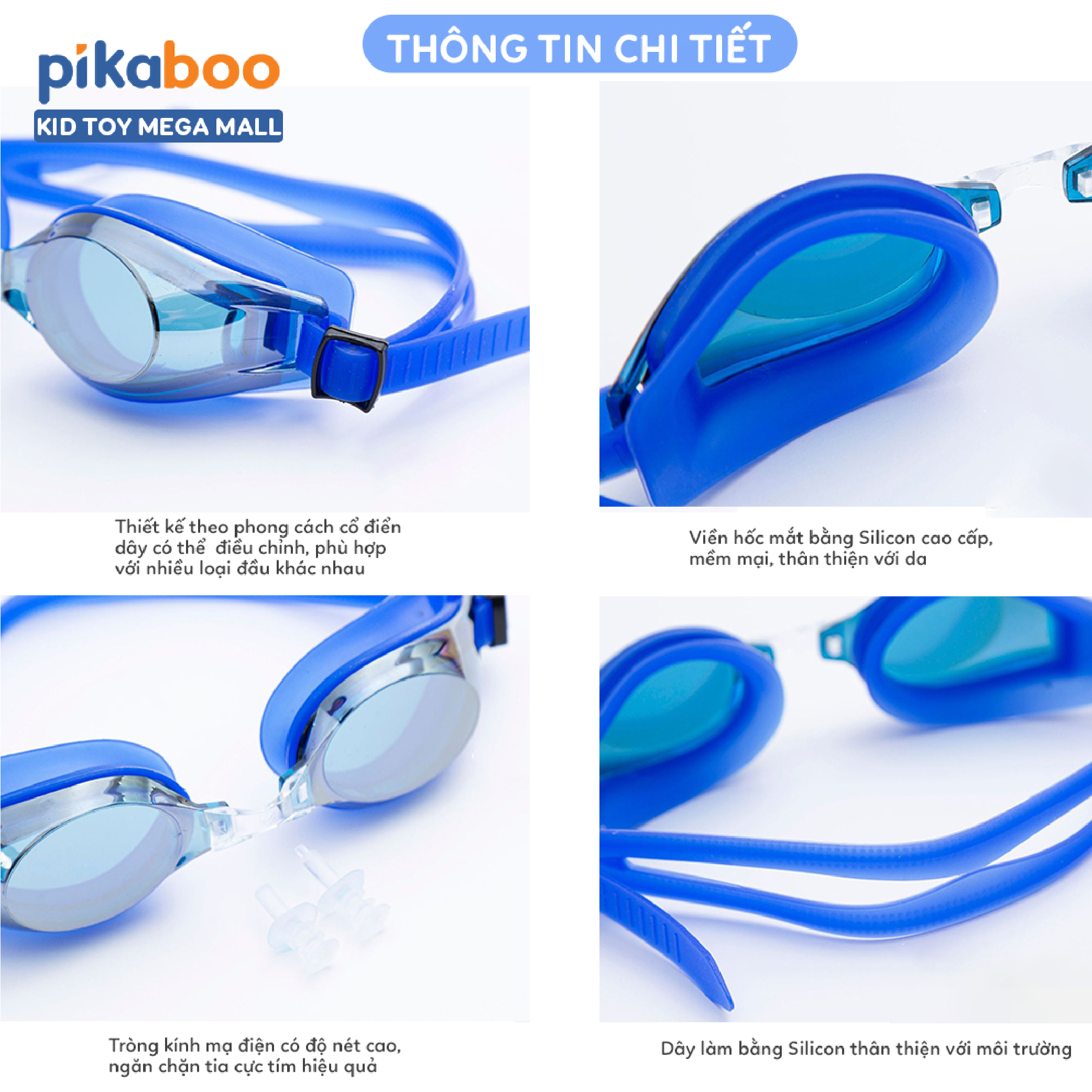 Kính bơi trẻ em Pikaboo kính bơi cho bé chất liệu nhựa và silicone không gây kích ứng da